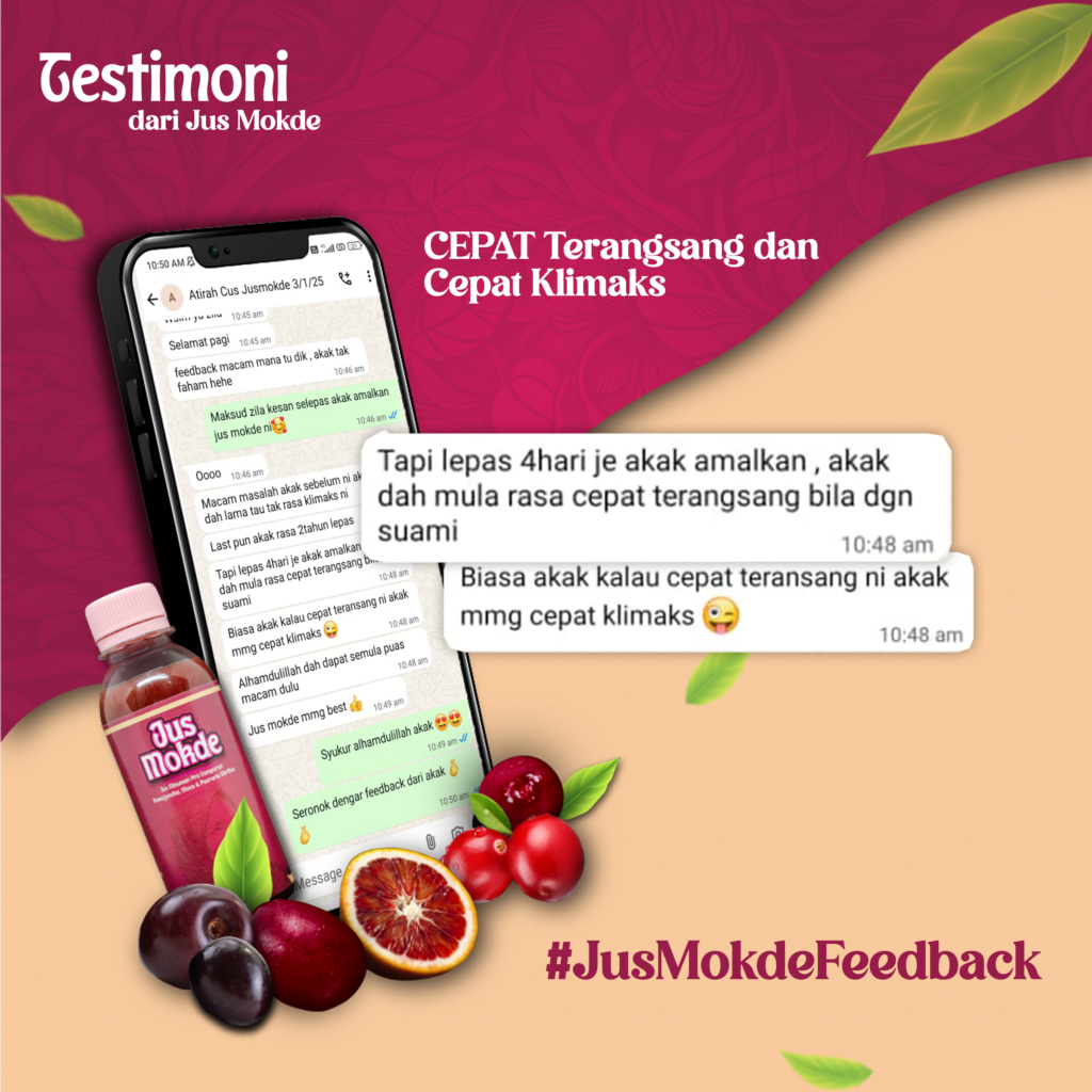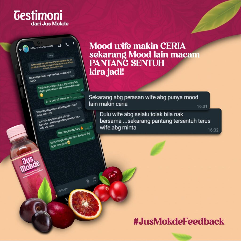 Tiada. Amalkan Jus Mokde setiap hari sebelum bersama pasangan.